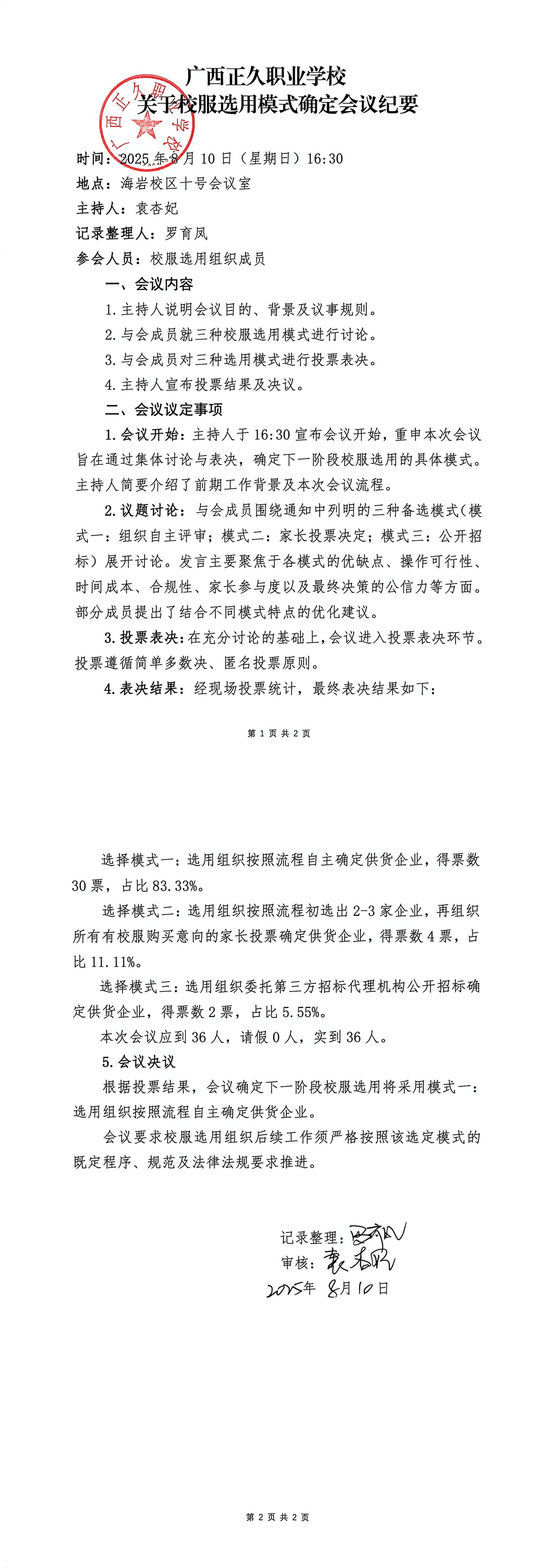广西正久职业学校关于校服选用组织及工作流程培训会议纪要