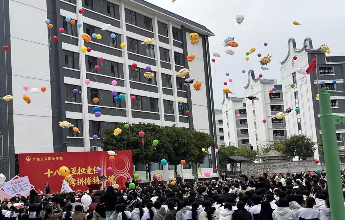 为引导高三学子树立成人意识、明确责任担当,以饱满姿态冲刺2026年高考,2026年3月4日,广西正久职业学校分别在海岩校区、迎宾湖校区隆重举行2026年高三成人礼暨高考誓师大会。学校领导、全校师生及高三学生家长齐聚校园,共同见证同学们迈向成年、誓师出征的庄严时刻。
