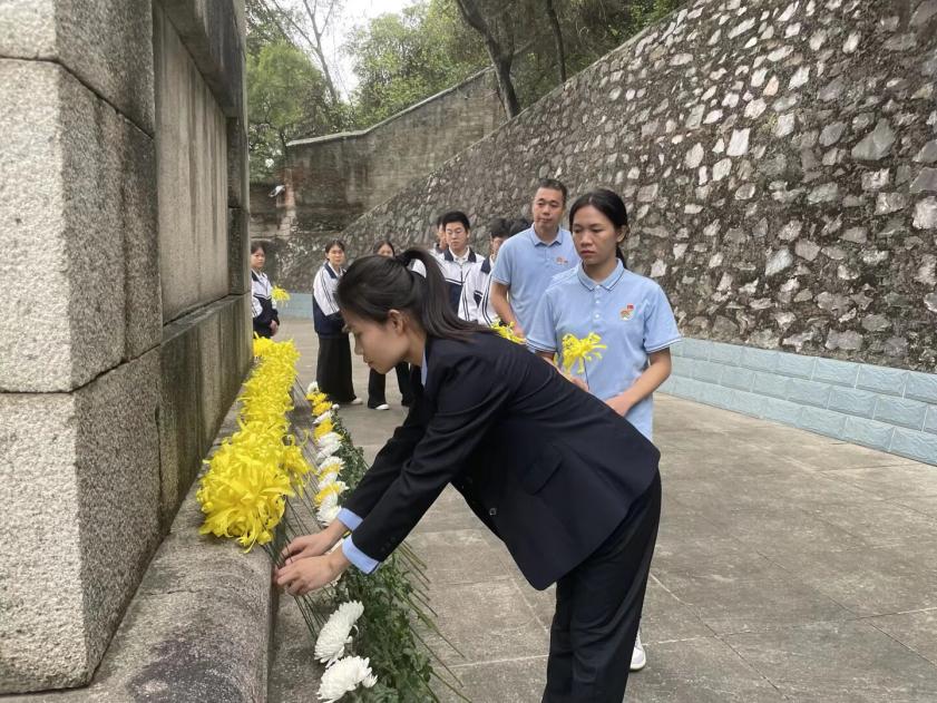“刻苦勤奋,自强不息,报效祖国,脚踏实地,崇尚科学,努力学习,团结拼搏,永争第一!”铿锵有力的集体宣誓声回荡山间,彰显出广西正久职业学校团员青年立志报国的坚定决心。仪式结束后,师生们依次献上亲手制作的菊花,绕碑瞻仰烈士英名,在追思中感悟革命精神的永恒力量。活动最后,全体师生在纪念碑前合影留念,将这场涤荡心灵的红色教育定格为永恒记忆。
