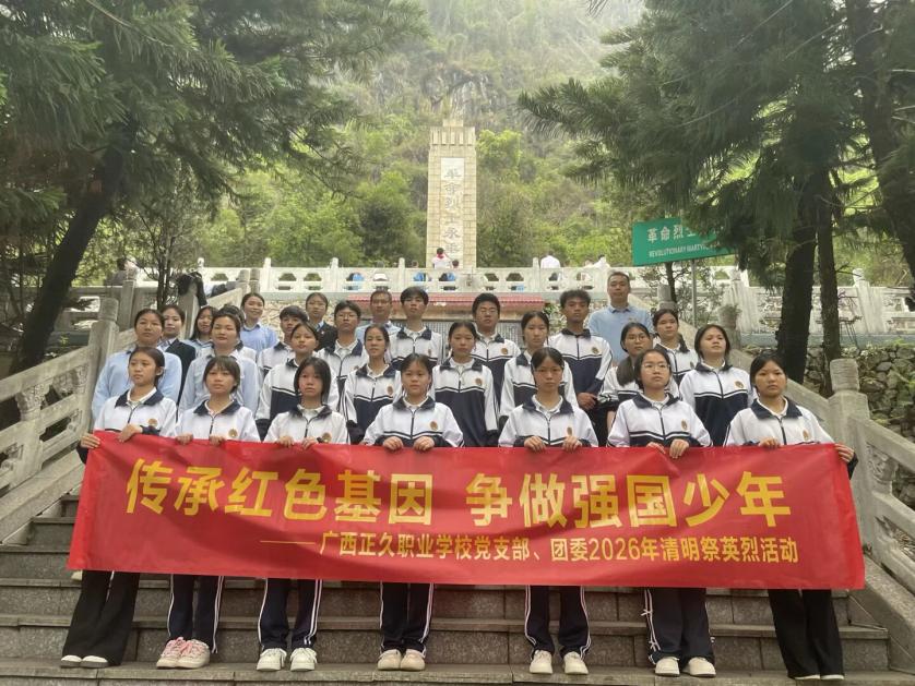 又是一年清明至,松柏凝翠寄哀思。为缅怀革命先烈丰功伟绩,传承红色基因,厚植爱国主义情怀,以党建引领团建,进一步深化青少年思想引领。2026年4月2日上午,广西正久职业学校组织党员教师代表、团员学生代表赴灵山县六峰山英雄纪念碑开展“传承红色基因,争做强国少年”爱国主义教育活动。