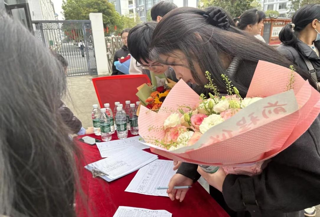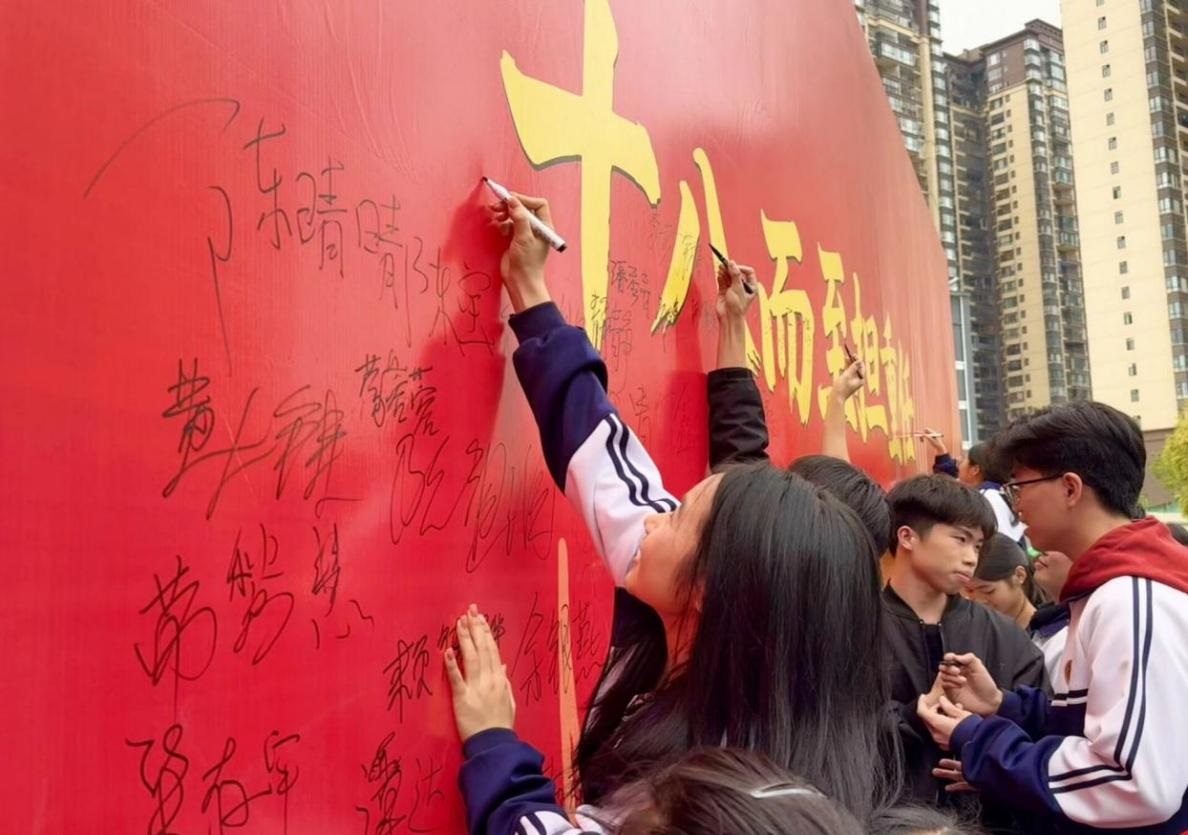 活动最后,师生、家长纷纷来到背景墙签名留念,用镜头定格这一意义非凡的青春瞬间,现场温馨而热烈。