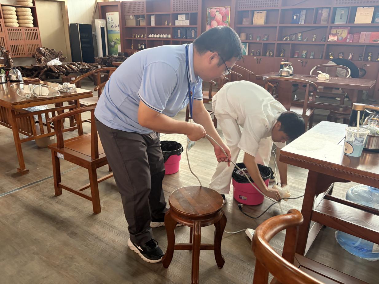 为办好本次比赛,学校提前成立统筹组和七个专项工作小组,明确分工、高效协同。赛前,师生团队共同完成审评室、制茶场地设备调试和用具的布置,全面清理校园和车间环境,合理布置炒锅、电脑等设备,同步完成机房的系统调试;后勤组提前做好茶点和午餐的准备,确保赛事期间各项物资、服务到位。